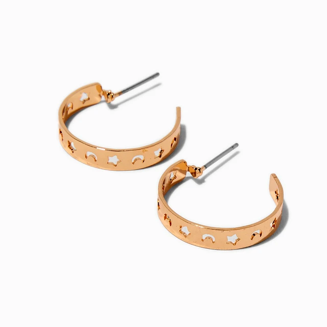 Gold-tone Moon & Stars Cut-Out Half Hoop Earrings