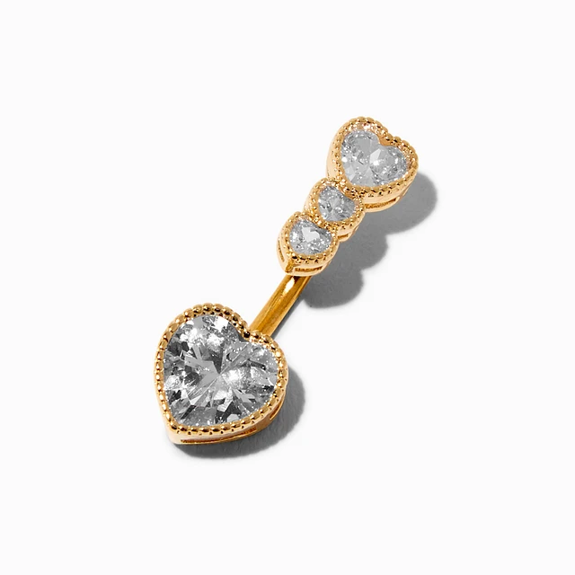 Gold-tone Stainless Steel Cubic Zirconia Heart 14G Belly Bar