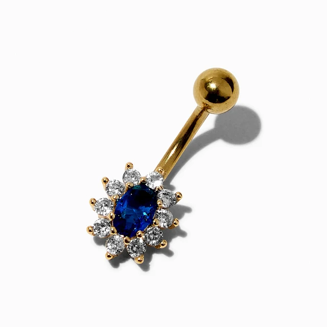 Gold-tone Stainless Steel Cubic Zirconia Sapphire Flower 14G Belly Bar