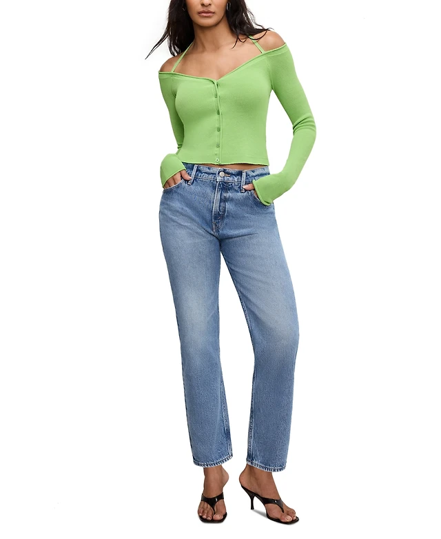 Good American Women's Rib-Knit Off-Shoulder Long-Sleeve Top