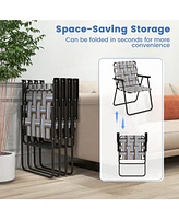 Gouun 2 Pieces Folding Beach Chair Camping Lawn Webbing Chair-Cofee