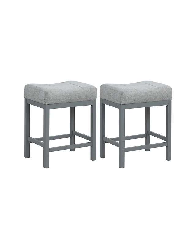 Gouun 24.5 Inches Linen Fabric Saddle Stools Set of 2 with Cushioned Seat