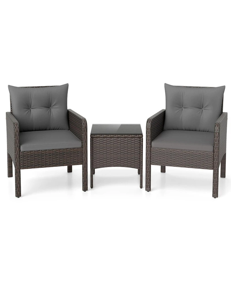 Gouun 3-Piece Compact Pe Wicker Patio Set with Cushions for Porch and Balcony