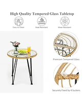This 3-piece modern bistro set includes two cushioned chairs and a tempered glass top table, offering a stylish and comfortable spot to enjoy your outdoor space. Made with durable all-weather rattan and a sturdy steel frame, it's built to last and perfect for patios, balconies, or gardens.