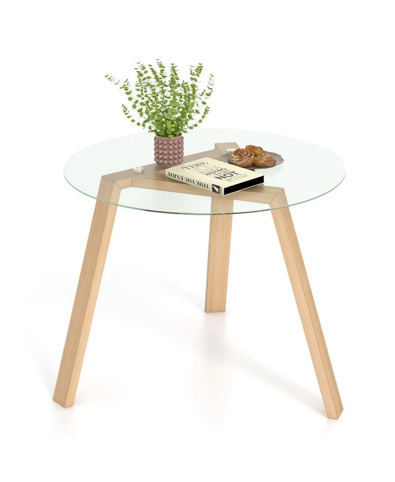 Gouun 36 in Round Glass Dining Table for 4 with Rubber Wood Pedestal Base