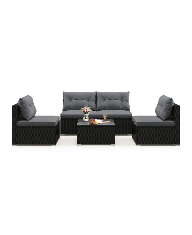 Gouun 5-Piece Wicker Patio Sofa Set with Cushions and Square Coffee Table