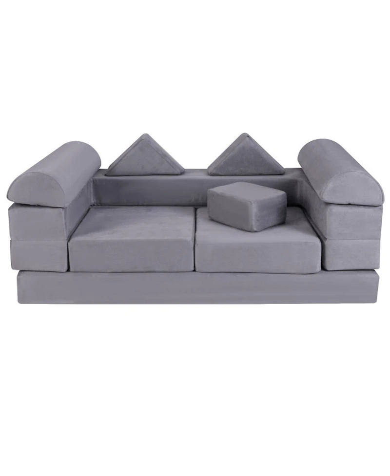 Nine interlocking foam shapes transform any living room or playroom into an active exploration zone where toddlers can climb, crawl, slide, and build to their imagination's content. Each block is wrapped in breathable suede fabric over resilient elastic sponge, striking a balance between cushioned safety and firm enough support for little feet to push off confidently. The modular pieces stack into a couch, lounger, cozy bed, or even an ocean ball pit, adapting to the day's adventure without requiring any tools or hardware.