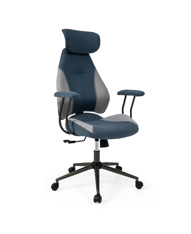 Engineered for all-day comfort, this high-back office chair features a 2D adjustable headrest that raises and tilts to cradle your head at the ideal angle. The rocking backrest locks into four positions between 92 and 114 degrees and swings freely up to 118 degrees for dynamic movement. Suede upholstery paired with dense sponge padding envelops you in supportive comfort. Wing-style side panels hug your back for lateral support, and padded armrests reduce shoulder tension.
