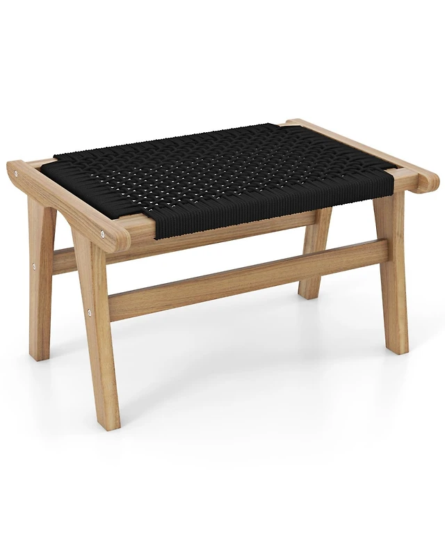 Gouun Indoor Outdoor Ottoman Footstool Teak Wooden Foot Rest with Handwoven Cordage