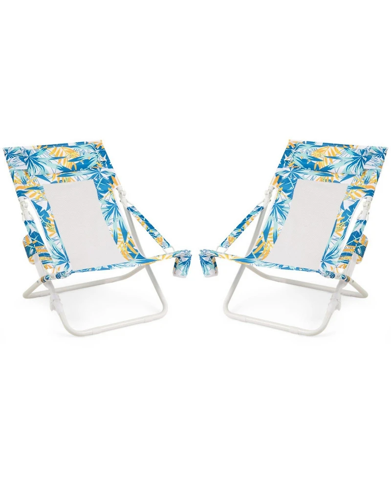Gouun Low Folding Beach Chair Set of 2 with Pillow and Cup Holder