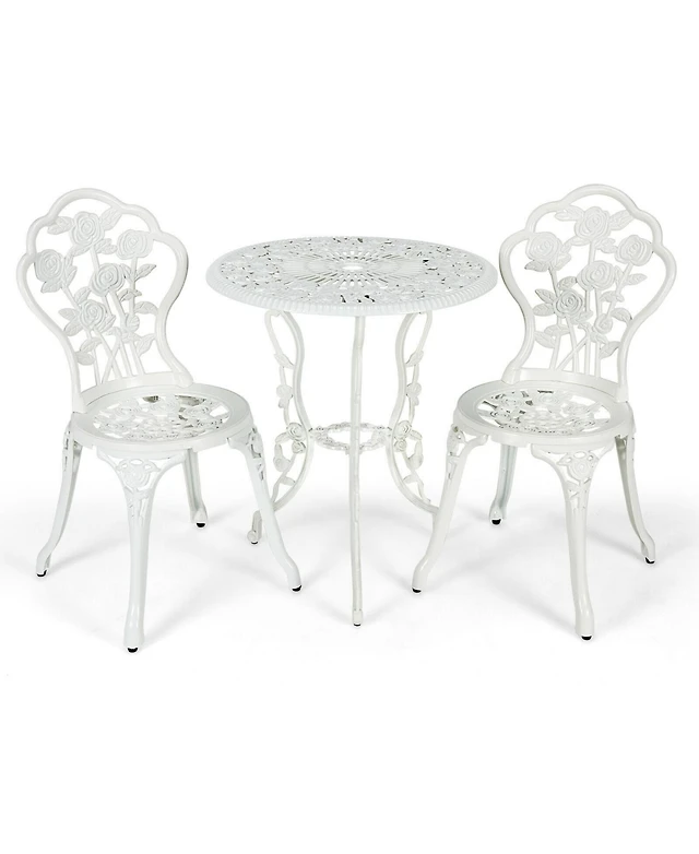 3PCS Cast Aluminum Patio Bistro Furniture Set Rose Design Outdoor