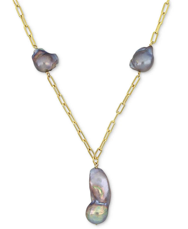 Gray Cultured Freshwater Baroque Pearl (13 & 35mm) 20" Paperclip Necklace in 18k Gold-Plated Sterling Silver