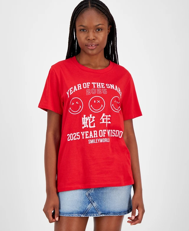 Grayson Threads, The Label Juniors' Lunar New Year Smiley Graphic T-Shirt