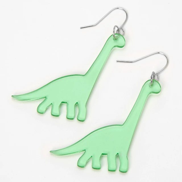Sterling Silver Green Crystal Dinosaur Stud Earrings