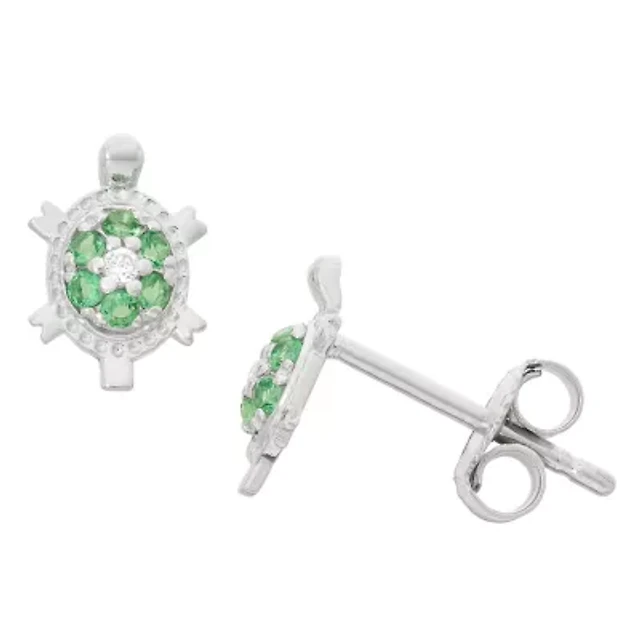 Green Cubic Zirconia Sterling Silver 6mm Stud Earrings