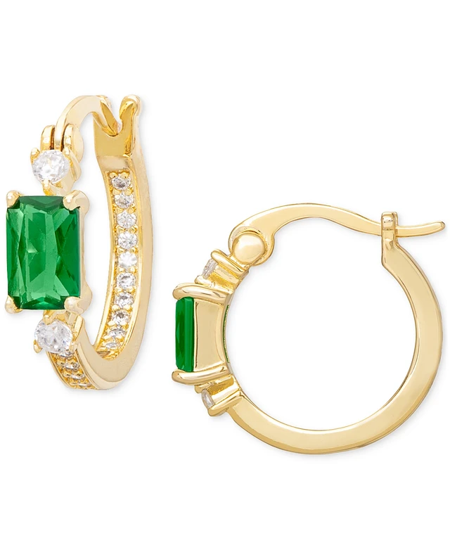 Green Spinel (1/4 ct. t.w.) & Lab-Grown White Sapphire (1/3 ct. t.w.) Small Hoop Earrings in 14k Gold-Plated Sterling Silver, 0.60"