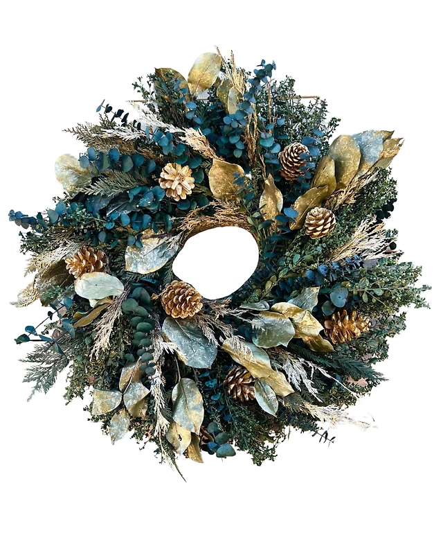 GreenishBlu Green and Gold Real Preserved Wreath, 24"