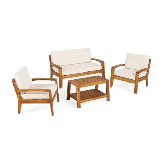 4 Pcs Acacia Wood Patio Conversation Set w/Cushions for Garden