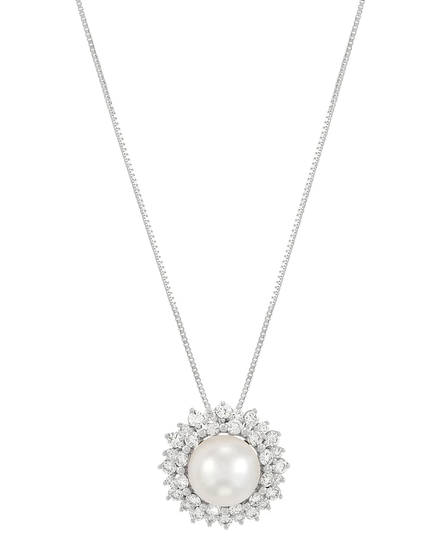 Cultured Freshwater Pearl & Lab-Grown White Sapphire (1/6 ct. t.w.) Halo 18" Pendant Necklace in 10k Gold (Also in Onyx)