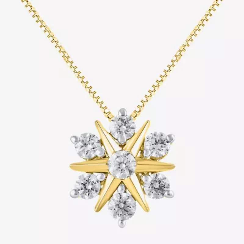 (G/Si2) Womens 1/2 CT. T.W. Lab Grown White Diamond 10K Gold Sunburst 18 Inch Pendant Necklace