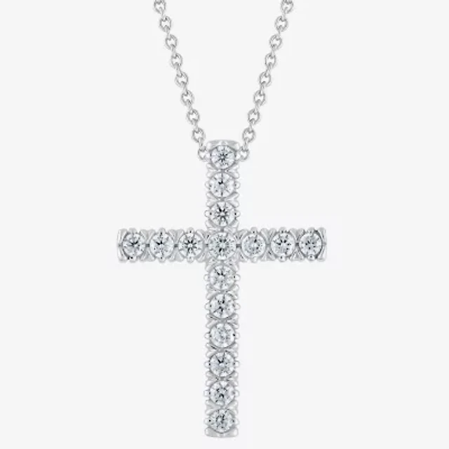 (G/Si2) Womens 1/4 CT. T.W. Lab Grown White Diamond 10K Gold Cross 18 Inch Pendant Necklace