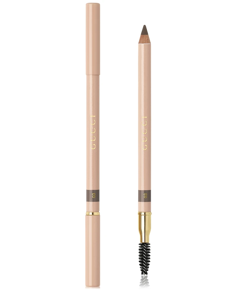 Gucci Beauty's Crayon Definition Sourcils is a versatile, lightweight eyebrow pencil with a powdery texture that provides natural-looking, flawless brows. Housed conveniently within a pencil, the velvety matte color goes on smoothly and blends seamlessly into brows. Dual-sided with a spoolie at one end, the tool allows color to be combed through the brows for a look that stays put all day without smudging or transferring. Frame your eye makeup looks with the ultra-smooth, easy-to-blend formula, the perfect one-step addition to your beauty routine. Its buildable formula allows you to play around with intensities and create anything from a natural finish to a dramatic brow look and everything in between.