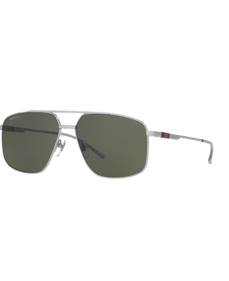 Elevating the pilot frame to new heights of style, Gucci adds a touch of sophistication to their iconic design with gray lenses. Crafted from metal in silver color, these shades boast an exquisite finish and solid-color lenses for a luxurious look that exudes timeless elegance. Embrace the allure of this fusion of tradition and contemporary flair with Gucci GG1676S sunglasses, where vintage inspiration meets modern flair and sophisticated attitude.