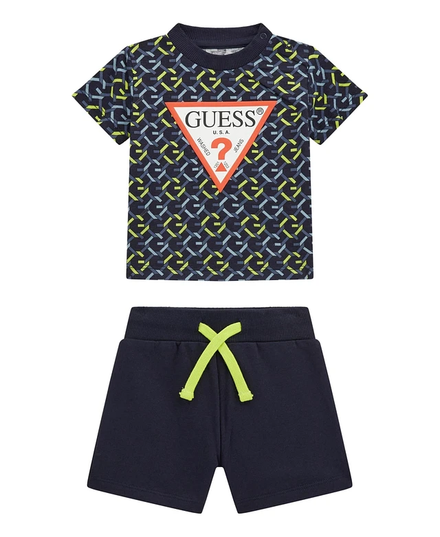 Guess Baby Boys Printed Short Sleeve T-Shirt and Active Shorts, 2-Piece Set