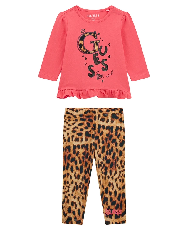 Guess Baby Girls 2-Piece Long Sleeve T-Shirt and Printed Legging Set