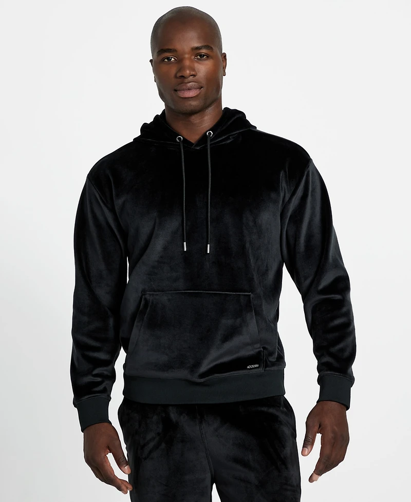 Combining a plush velvet finish with a relaxed silhouette, this Guess sweatshirt features a drawstring hood and a kangaroo pocket for elevated casual style. The ribbed trim ensures a comfortable, snug fit for everyday wear.