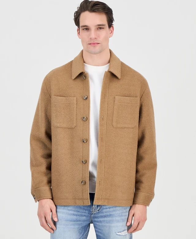 Guess Men's Winston Long-Sleeve Tweed Plaid Button-Front Shirt Jacket