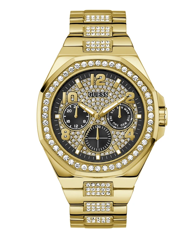 Guess Men's Crystal Gold-Tone Stainless Steel Bracelet Watch 46mm