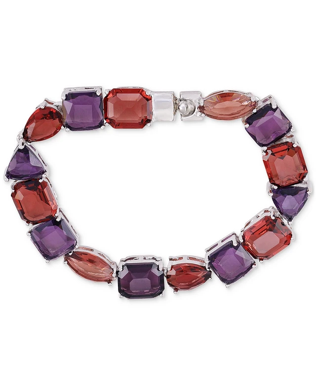Guess Silver-Tone Mixed Color Crystal Tennis Bracelet