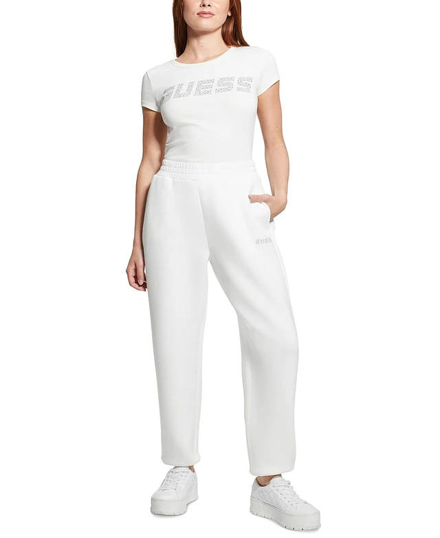 Guess Women's Cecelia Scuba Rhinestone-Logo Jogger Pants