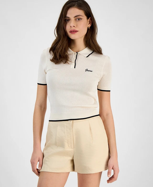 Guess Women's Contrast-Tipped Short-Sleeve Polo Top