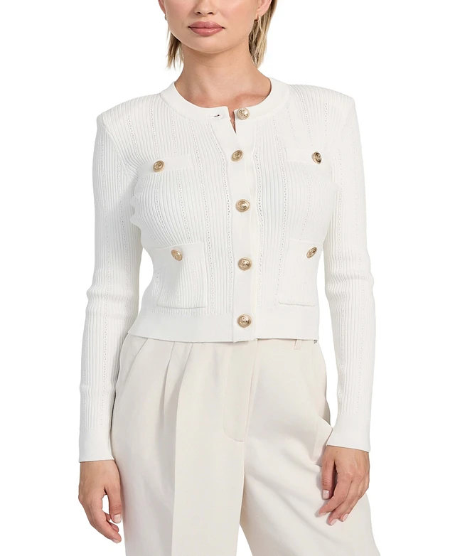 Belldini Women's Black Label Embroidered Open-Front Cardigan Sweater