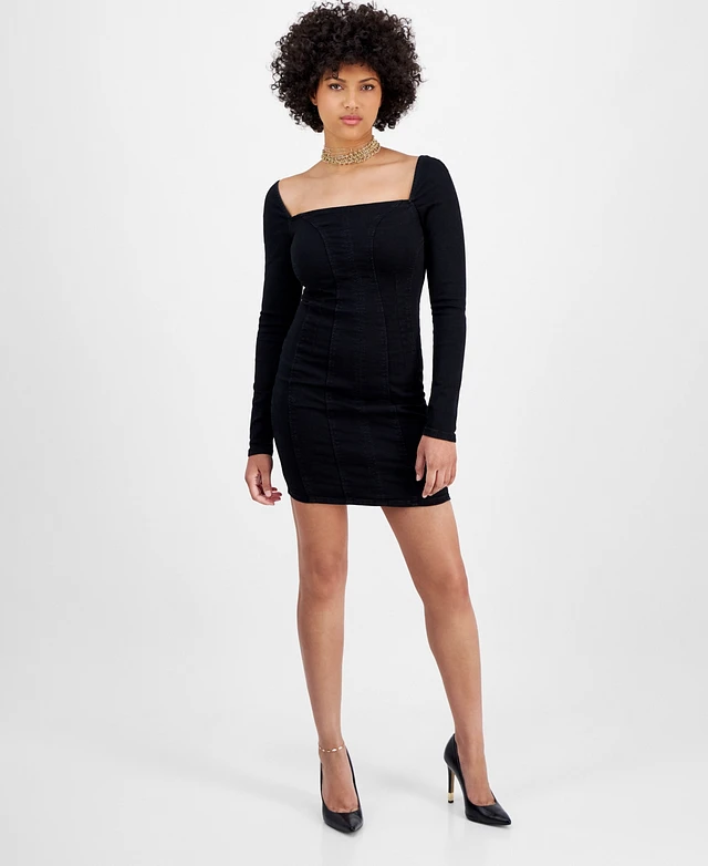 Guess Women's Solid Square-Neck Short Bodycon Dress