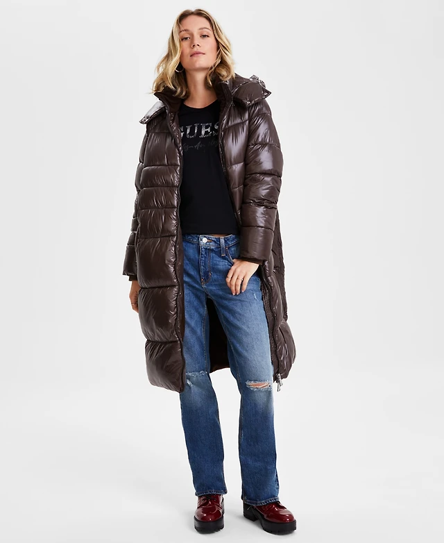 Guess Women's Shine Hooded Mid-Length Puffer Coat