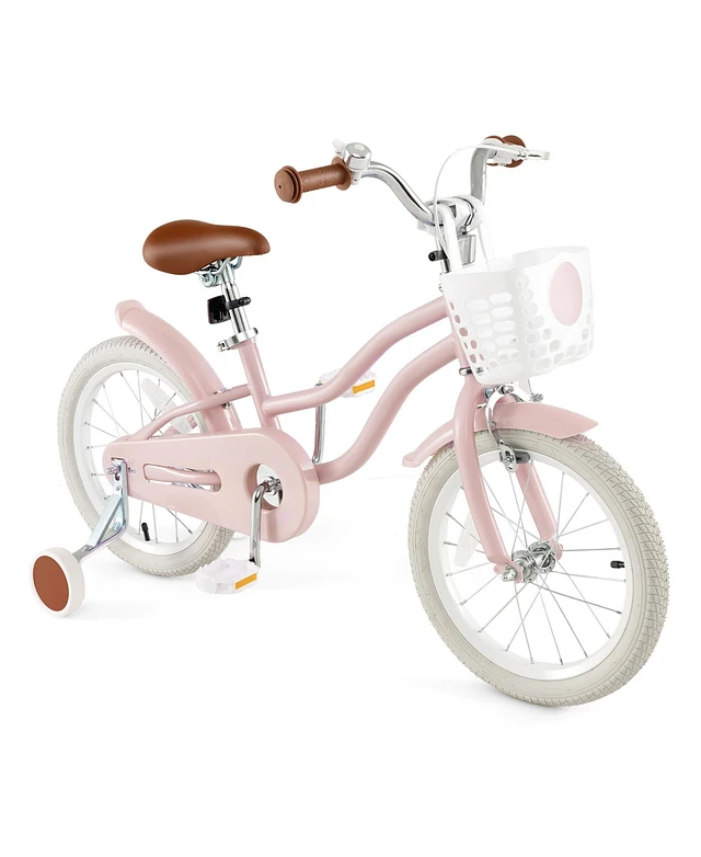 Gymax 16'' Kids Bicycle Children's Training Bicycle w/ Removable Training Wheels & Basket Pink