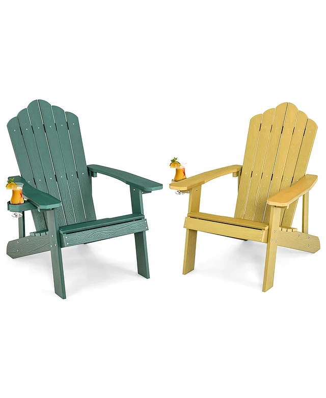 Gymax 2PCS Patio Hips Adirondack Chair w/ Cup Holder Weather Resistant 380 Lbs