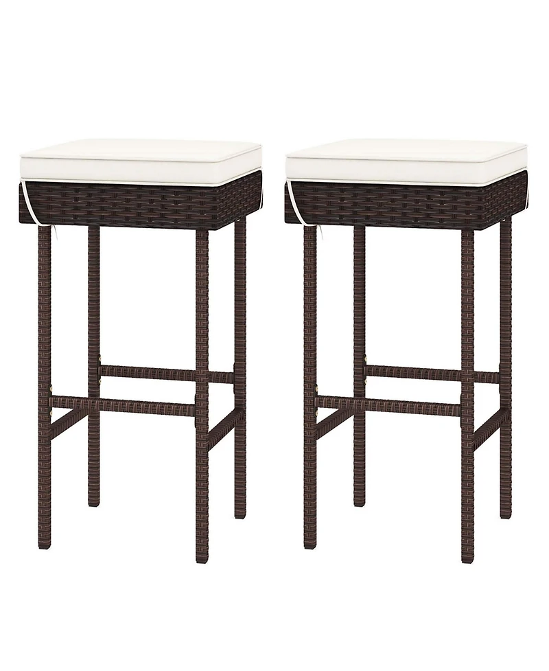 Enhance your outdoor living space with these chic patio rattan barstools. Constructed with a sturdy metal frame and premium mix brown rattan, these barstools are resistant to fading and maintain their appeal for years to come. The cozy seat cushions, featuring elastic sponge filling and zippered covers, offer superior comfort and easy upkeep. With added footrests for stability and comfort, each barstool can accommodate up to 400 lbs. Whether you're hosting a gathering or enjoying a peaceful evening outdoors, these barstools effortlessly blend functionality and sophistication, making them a must-have addition to your outdoor decor. Features: Elegant rattan surface ensures long-lasting beauty. Supported by a heavy-duty metal frame for optimal stability. Each barstool can hold up to 400 lbs. Includes a seat cushion for enhanced comfort. Easy-to-maintain cushion covers with smooth zippers.