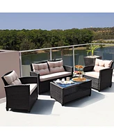 Gymax 4PCS Outdoor Rattan Furniture Set Cushioned Patio Sofa Set