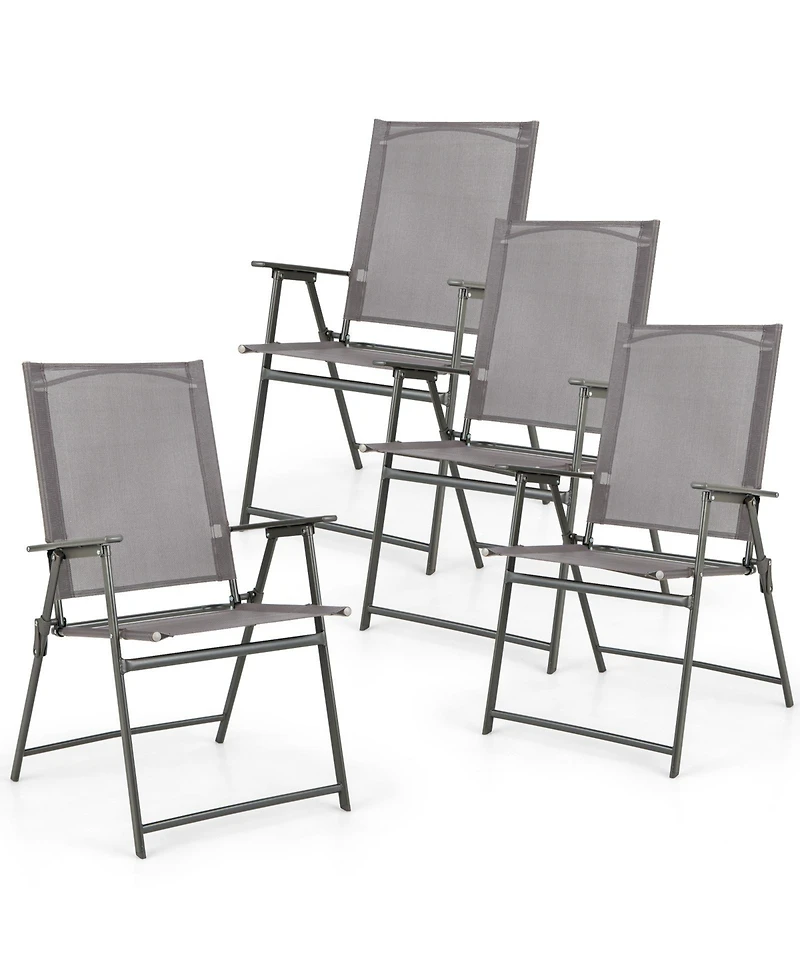 Gymax 4PCS Patio Portable Metal Folding Chairs Dining Chair Set Poolside Garden