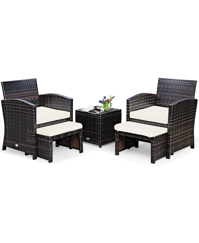 Gymax 5PCS Rattan Patio Furniture Set Chair & Ottoman Set Cushions