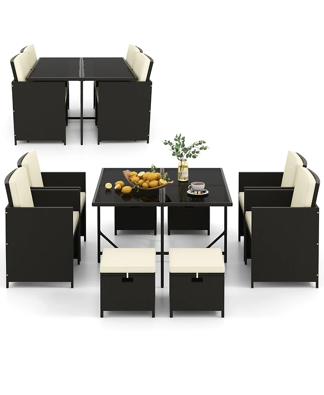 Gymax 9PC Rattan Wicker Patio Dining Set Outdoor Furniture Set w/ Cushion
