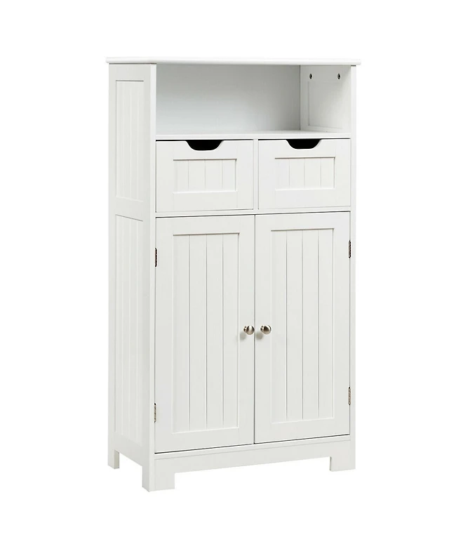 Gymax Bathroom Floor Cabinet Wooden Storage Organizer Side Cabinet W/2 Drawer 2 Doors