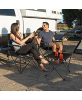 Gymax Folding Camping Chair Set of 3 Portable Lawn Chair & Side Table w/ 2 Cup Holders