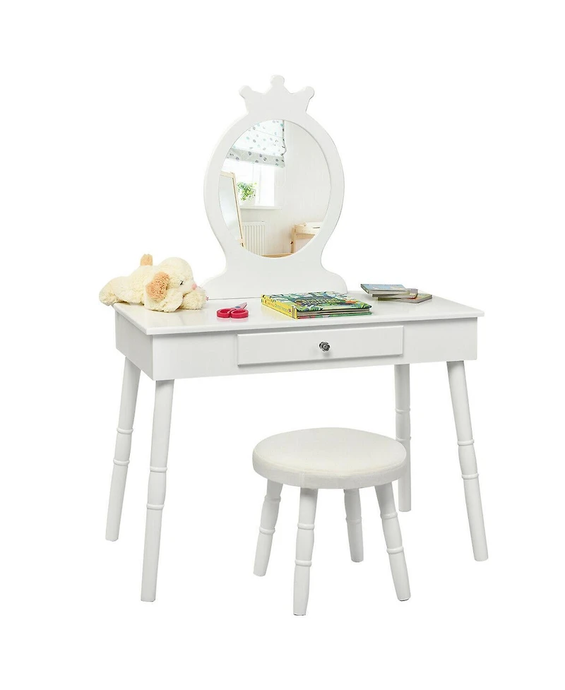 Gymax Kids Vanity Makeup Table & Chair Set Make Up Stool Play Set for Children