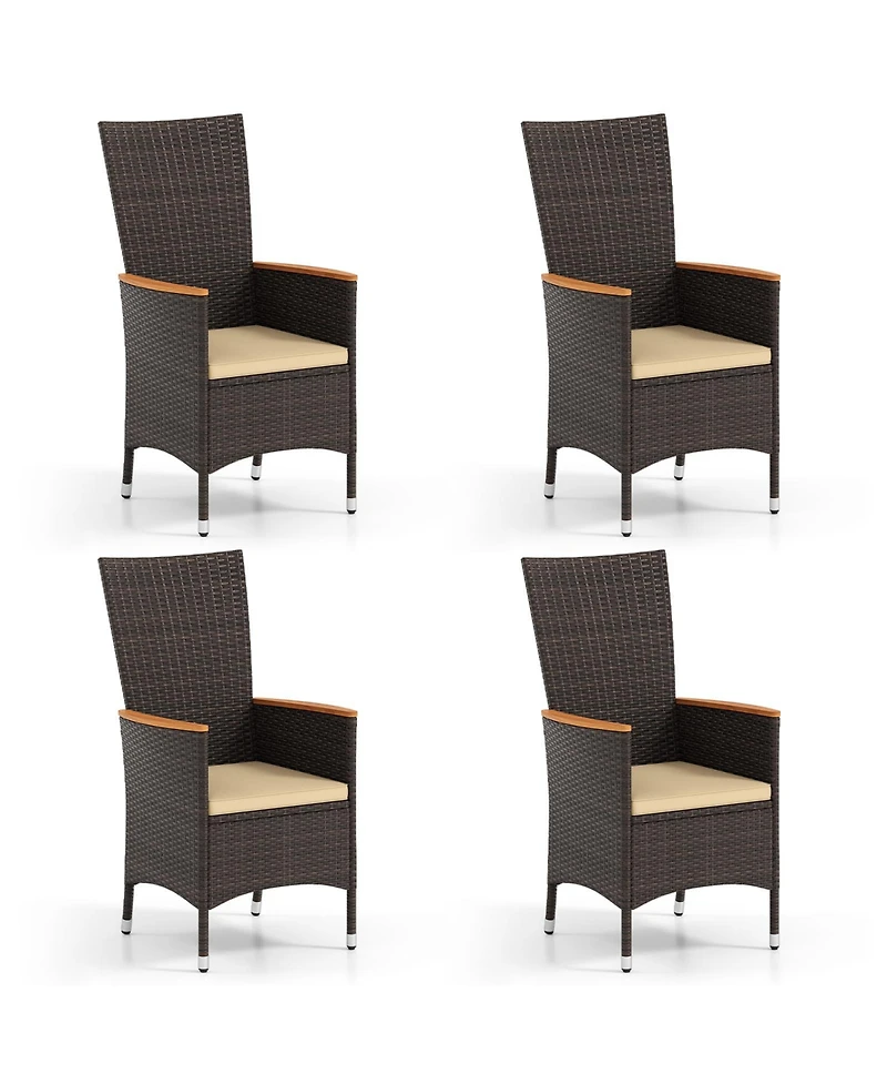 Gymax Patio Rattan Chairs 4 Pcs w/High Backrest & Acacia Wood Armrests Cushion