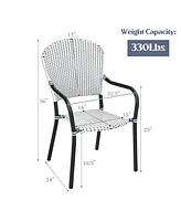 Gymax Set of 4 Patio Rattan Dining Chairs Stackable Armrest No Assembly
